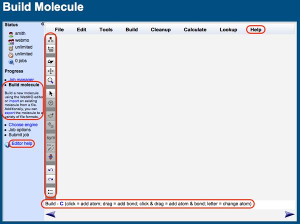 From Job Manager, click New Job or click New Job:Create New Job. The Build Molecule page with 3-dimensional WebMO Editor will open.