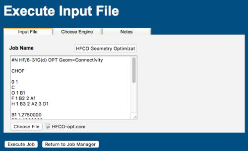 Click the Execute Job button to submit your job. This process bypasses the Build Molecule, Choose Engine, and Configure Job Options pages.