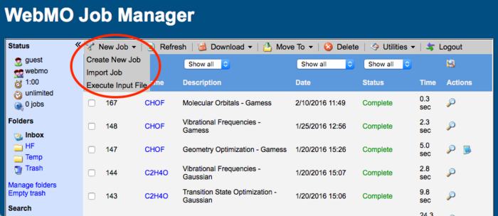 Sometimes one has a job input file from another source that one wishes to run on a WebMO implementation.