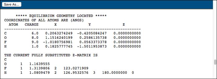 Note that only the output file is saved, not any auxiliary files that might have been created along with the output file. To view and/or download all of the files associated with a job, click the All files link in the left panel in WebMO Pro or Enterprise.