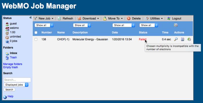 ) in the Job Manager. The cause of failure will usually be indicated near the end of the output file. Once the cause of failure is identified, appropriate corrective action can be taken.