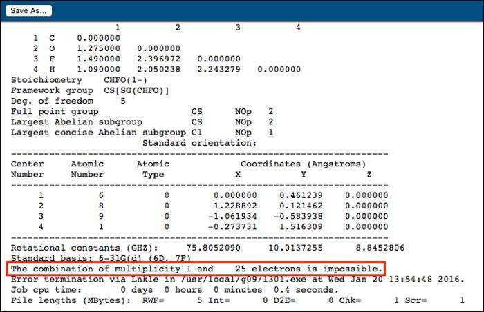 - Incorrect specification of charge or multiplicity (specify correctly)