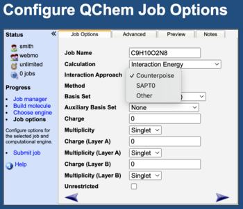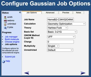 Since ONIOM is a computational method, it is not listed as a separate WebMO calculation type. Rather, it is invoked automatically when two layers are defined in various calculation types including Molecular Energy, Geometry Optimization, and Vibrational Frequencies. Support for specific calculation types depends on the underlying engine.