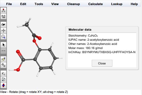 Upon drawing or importing a molecule, WebMO can lookup information about the molecule including