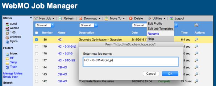 Sometimes it is desired to rename a job after it has been submitted or has completed in order to provide a more complete description of the calculation.